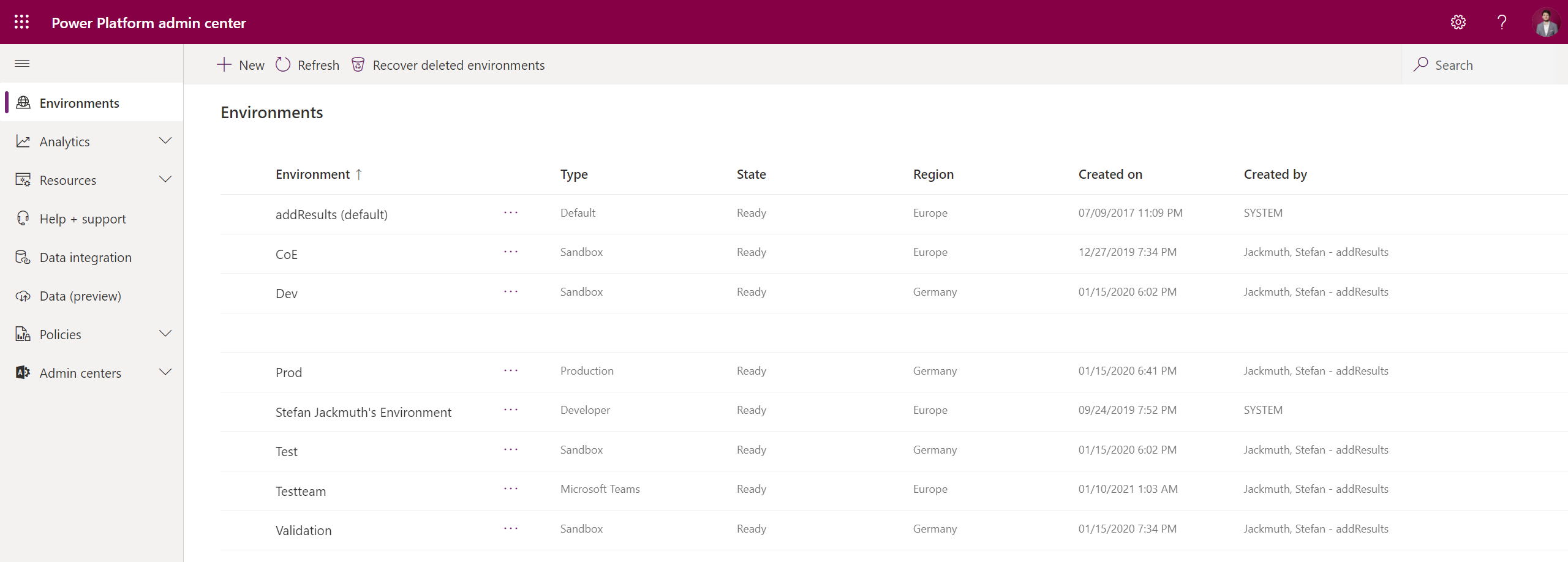 Typen von Power Platform Environments