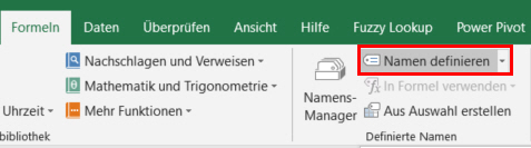 Reiter Formeln > Bereich Definierte Namen > Auswahl Namen definieren